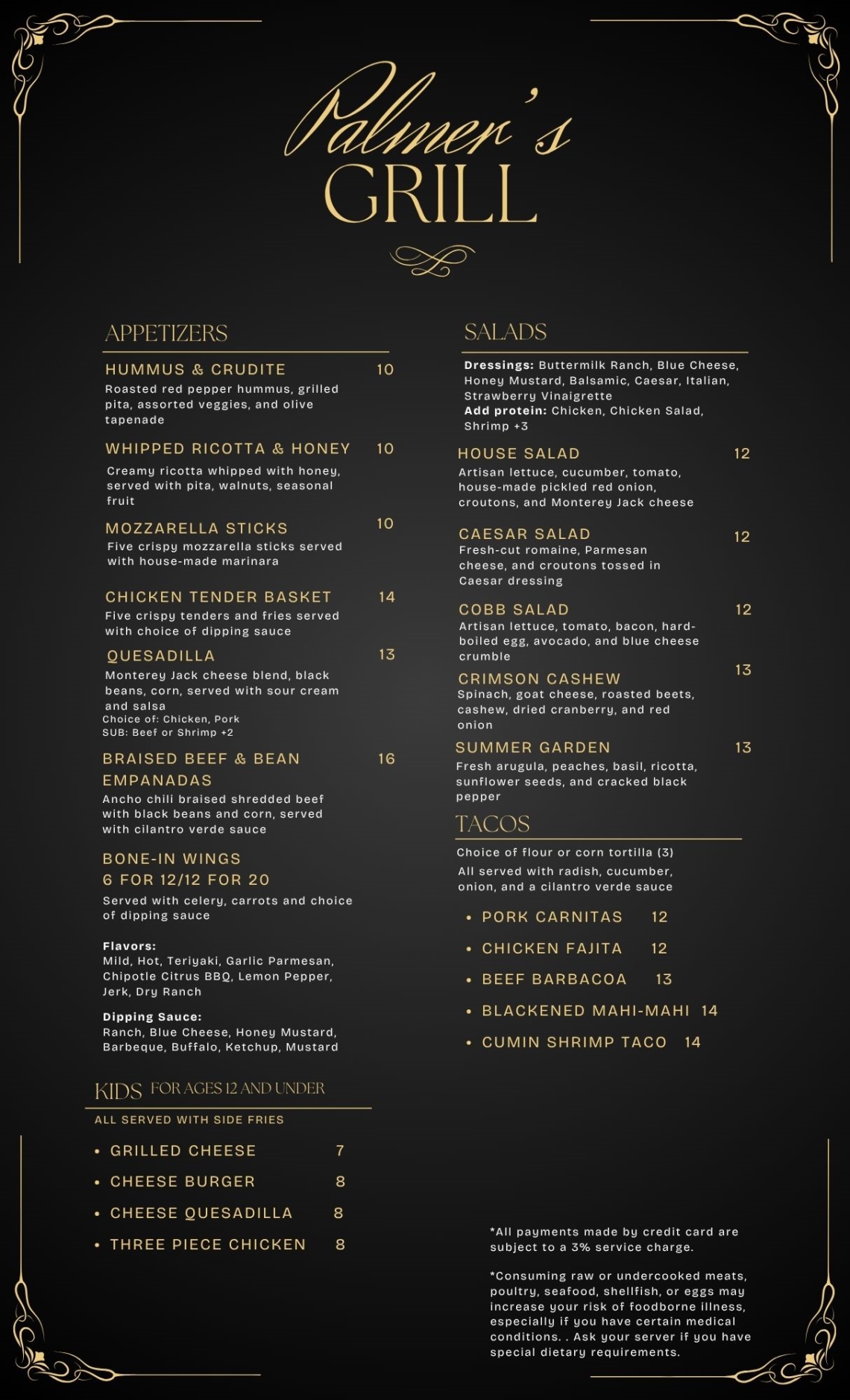 Our lunch menu is available Wednesday-Sunday from 11:00 am until 3:00 pm